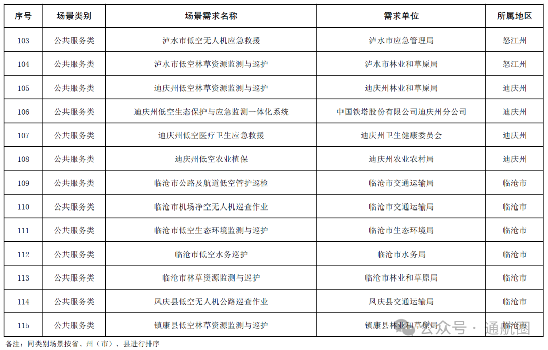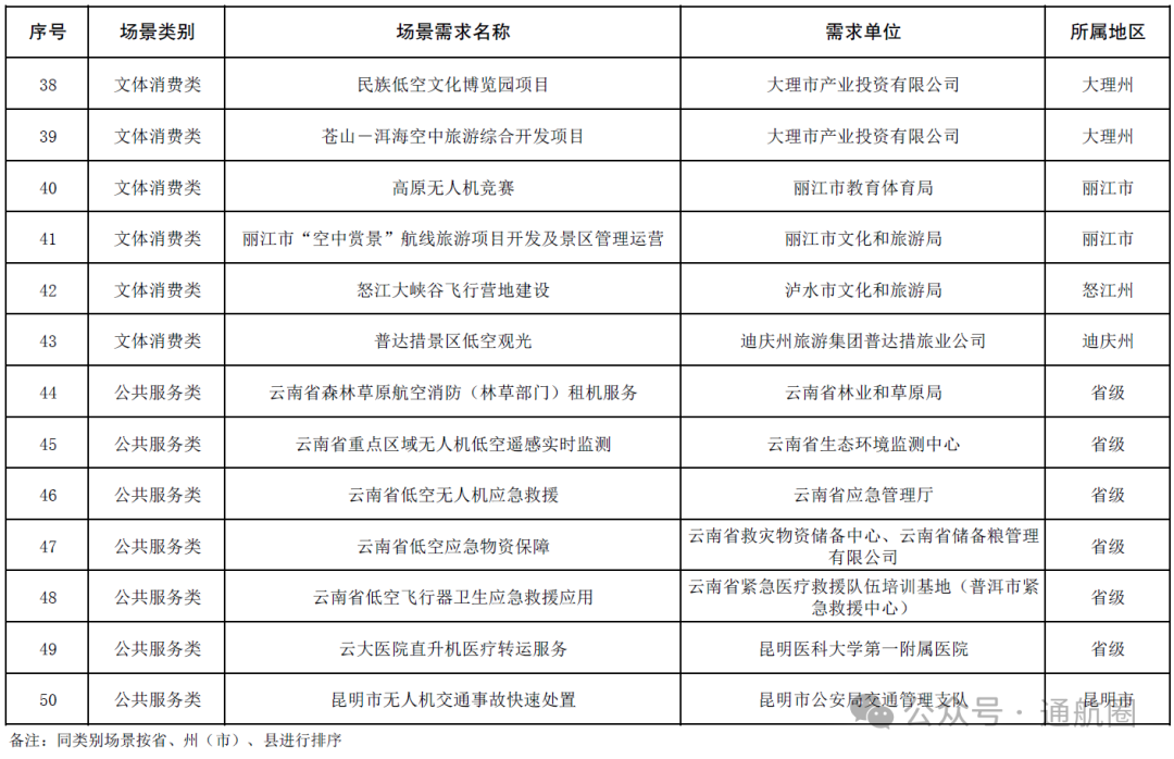 1. 云南省2025年第一批低空经济应用场景需求清单