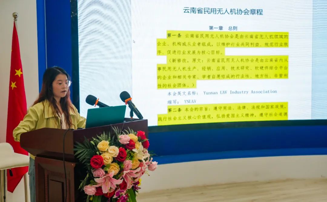 会上,周玲会长代表协会作2024年度工作报告,并介绍了2025年重点工作计划。她指出,过去一年协会成果显著:成功协办省市级无人机职业技能大赛,深度参与赛事策划与技术标准制定,获得各方肯定;联合申报的《高原山地多旋翼无人驾驶航空器短途运输规范》地方标准,如果申报成功将填补高原山地无人机应用领域的空白;2025年参加世界无人机大会,与多国尤其是南亚、东南亚代表深入交流,达成初步合作意向,助力企业出海;积极参与低空经济政策建设,多次出席厅局级会议,所撰写的《关于发展云南低空经济的建议》被省社科联采纳为决策咨询报告重要内容。