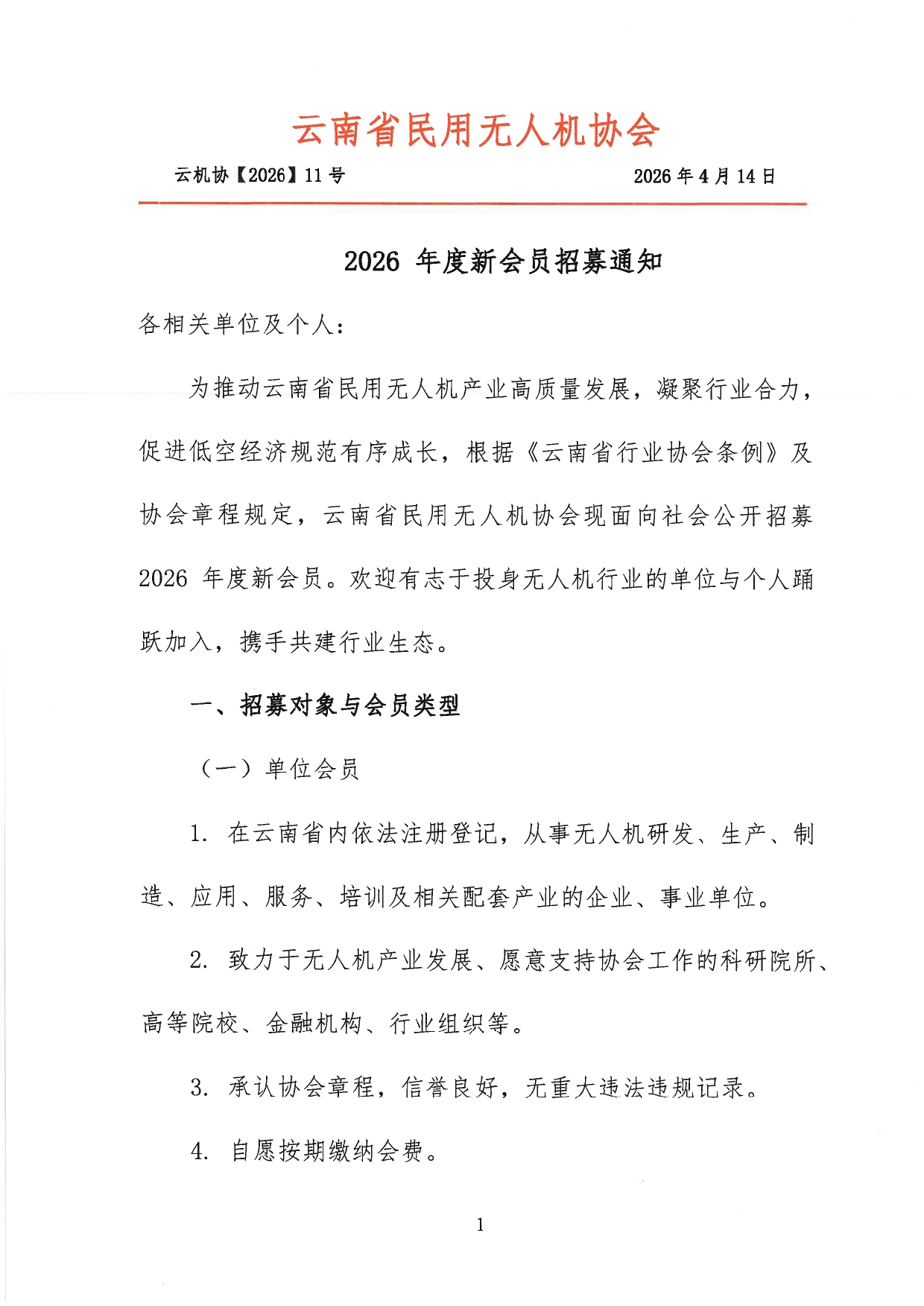 通知|云南省民用无人机协会2026年度新会员招募通知