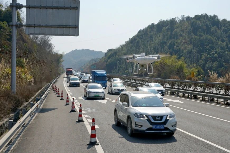 路政人员通过无人机能监控到3公里范围内的车流情况,从升空、获取视频、信息回传,整套流程操作只需3分钟,轻松实现“千里眼”。