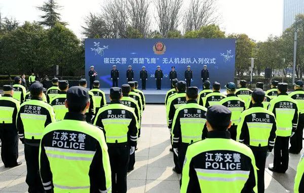 中国江苏网3月12日宿迁讯 3月12日上午,宿迁交警支队在市人民广场举行宿迁交警“西楚飞鹰”无人机战队入列仪式。