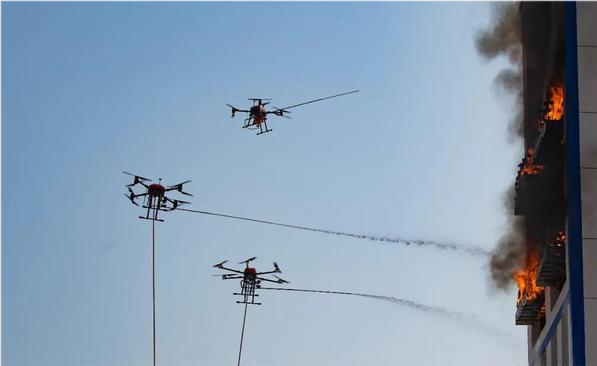 自应急管理部科技和信息化司日前发布《应急管理综合行政执法装备配备标准(征求意见稿)》,在应急管理综合行政执法装备配备表中,将执法无人机列入装备表后。目前,消防无人机等消防灭火设备的应用为百米以上高层建筑室外空间火灾扑救和外墙保温材料火灾扑救提供了一种有效的解决方案。消防无人机主要充当“灭火员”的角色。无人装备可搭载特殊的灭火导弹、破拆弹或泡沫灭火剂,悬浮于着火层上方,随后利用破拆弹锁定目标并快速发射,将玻璃破碎后,在指定区域喷洒灭火剂,精确、快速地将高层建筑等人难以到达企及的地方的火灾扑灭,做到既能灭火又能最大程度减少人员伤亡。