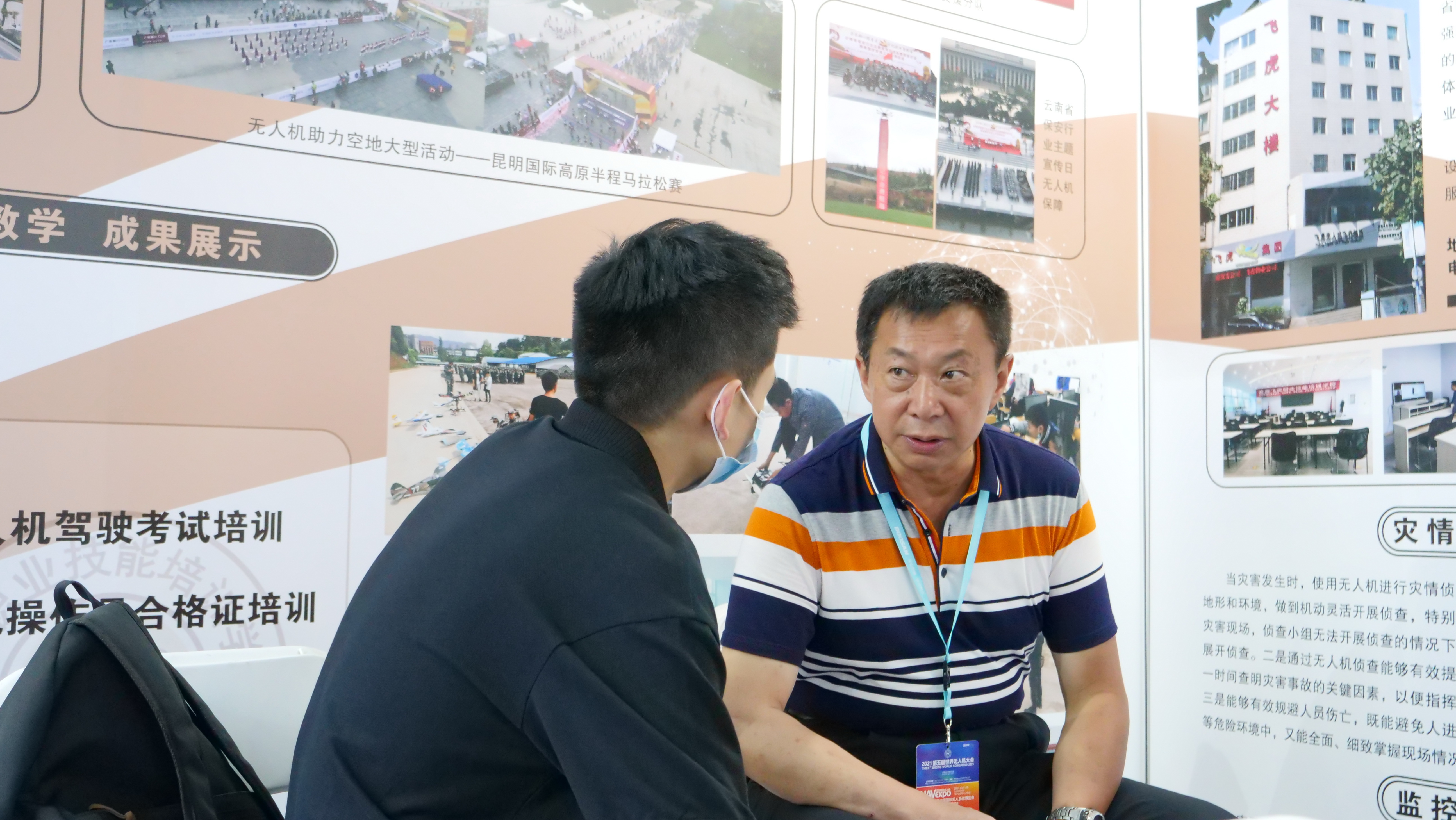 会员单位飞虎职业技能培训学校参加展览,并就飞虎职业技能培训学校在云南本土无人机培训行业的一些成绩进行介绍。