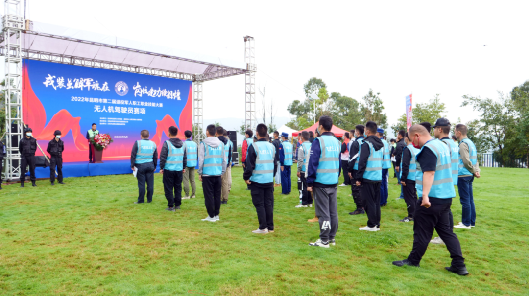 昆明退役军人事务局杨秀光副局长、白瑛处长等领导出席赛事活动现场。此次无人机赛项由昆明市退役军人事务局、昆明市人力资源和社会保障局主办,云南飞虎职业技能培训学校承办。大赛旨在深入贯彻习近平总书记关于退役军人工作的重要论述,落实能力提升专项行动,进一步引导、鼓励退役军人开展岗位练兵和技术比武活动,弘扬工匠精神,推动退伍军人技能提升。